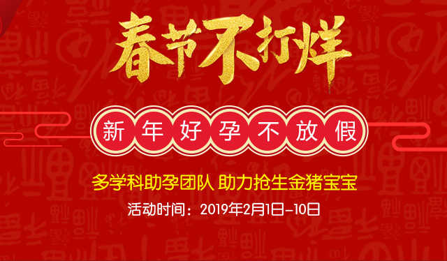 春节不打烊,好孕不放假!2019年春节期间,南京家和医院(南京新协和医院®)正常接诊,届时以主任医师领衔的多学科助孕团队联合亲诊,助力抢生金猪宝宝。
